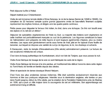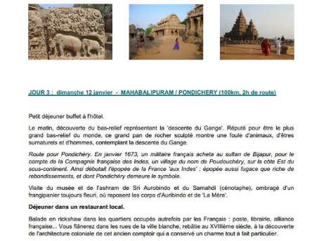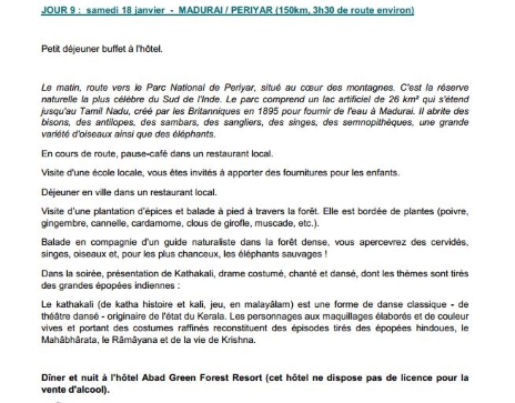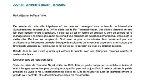 Programme - Départ le 10 janvier