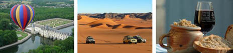 Découvrez l'approche du désert dans le Grand Sud Tunisien en 4x4, un week-end sensations en survolant les châteaux de la Loire à bord d'une montgolfière, découverte des produits du terroir et bien d'autres richesses.