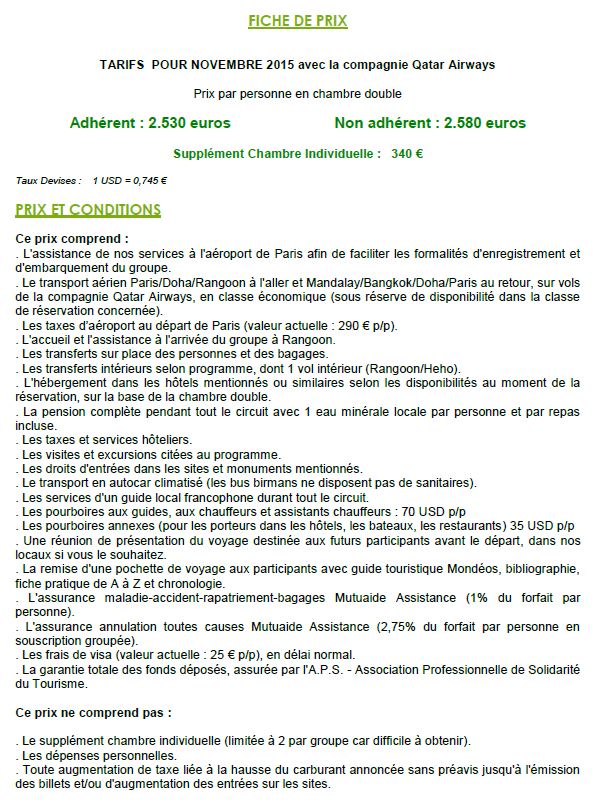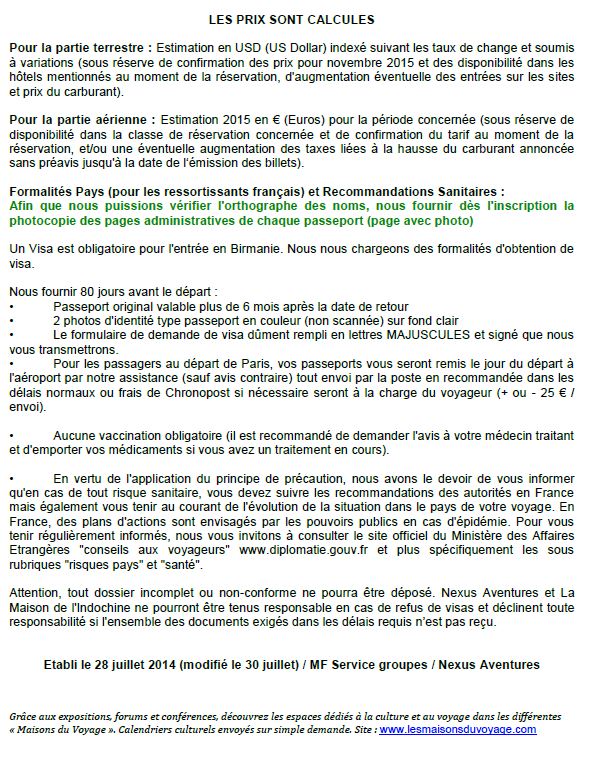25/05/15 Solde du voyage : Echéance le 1er septembre 2015.