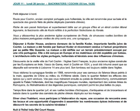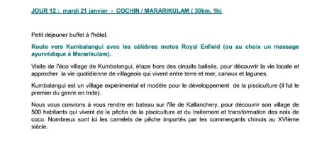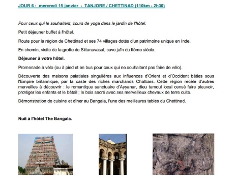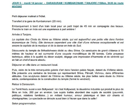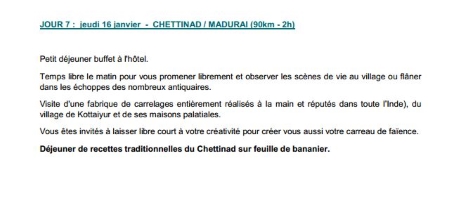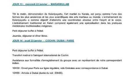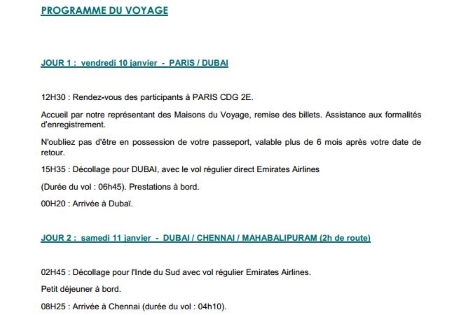 Programme - Départ le 10 janvier