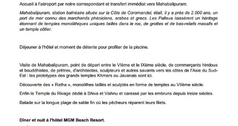 Voici le programme pour le premier groupe que vous pouvez également télécharger au format PDF N'hésitez pas à visiter les autres rubriques pour décrouvrir ce voyage…
