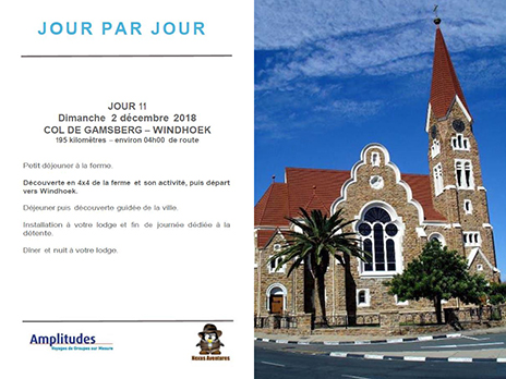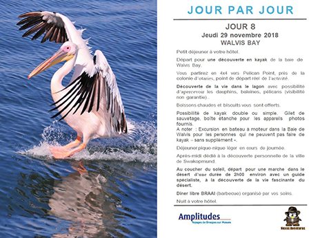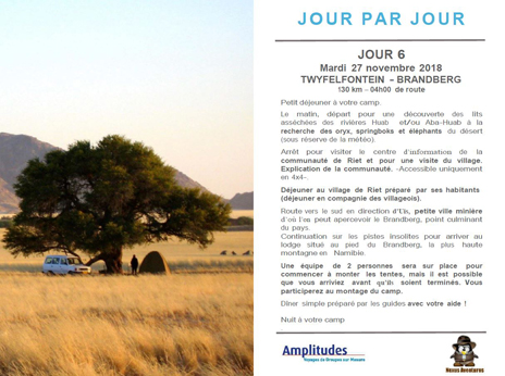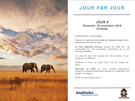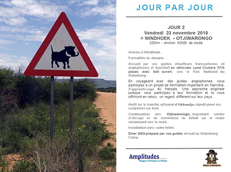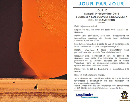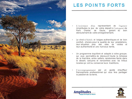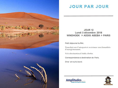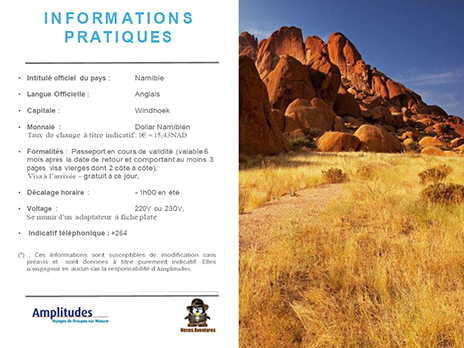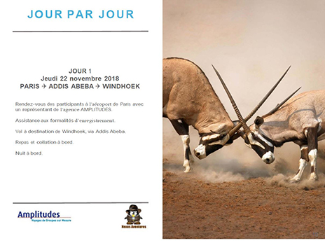 16/10/18 Réunion d'information : Pour vous mettre l'eau à la bouche et préparer le voyage en Namibie, une réunion d’information aura lieu à l’agence Amplitudes le mardi 6 novembre à 19h. adresse : 60 Rue Sainte-Anne, 75002 Paris.